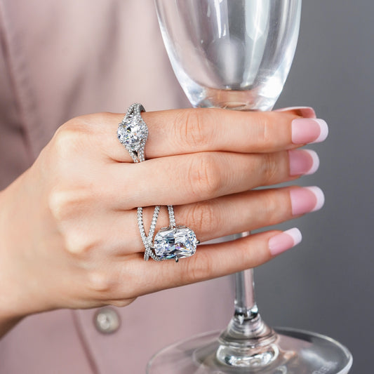 100-Facet Oval Cut with Half Moon Side Stones Split Shank Ring