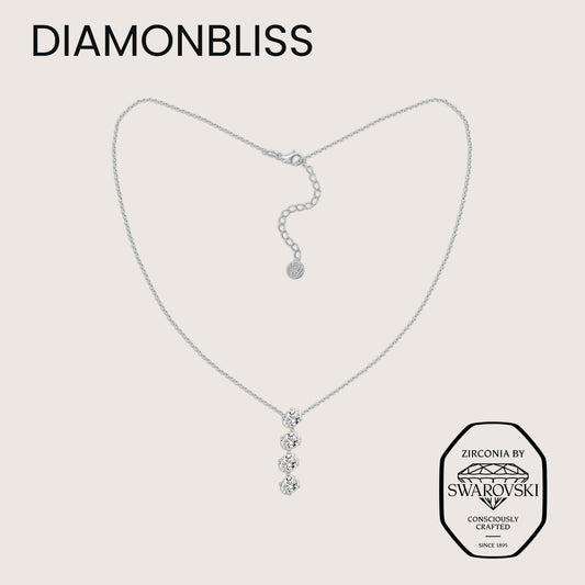 DIAMONBLISS Silver-tone Brass Oval cut Lariat Pendant Necklace| Embellished with Swarovski® Zirconia| 5 cttws