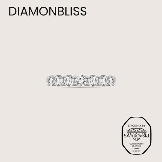 DIAMONBLISS Brass Round cut Half Eternity Ring| Embellished with Swarovski® Zirconia| 0.5 cttw