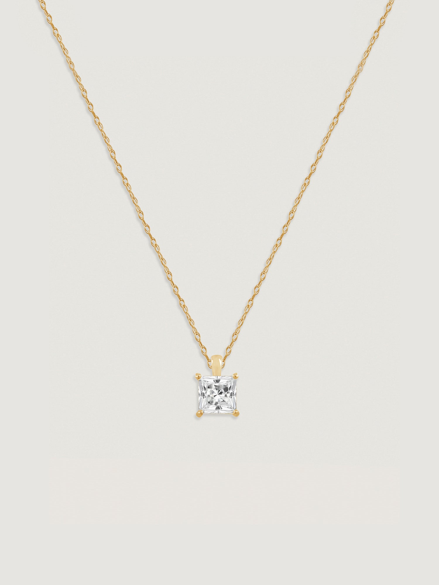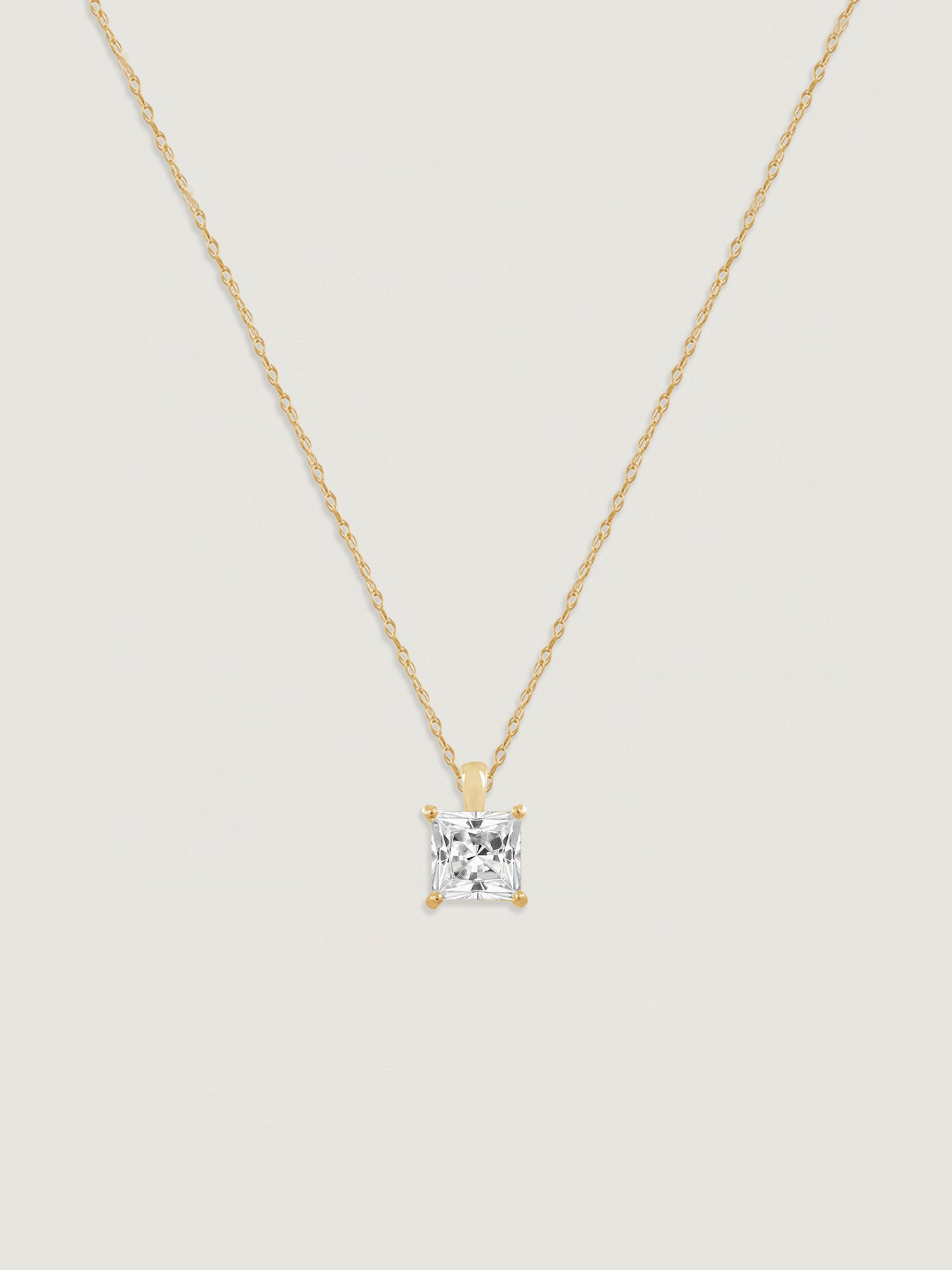 14K Solid Gold Princess cut Solitaire Necklace