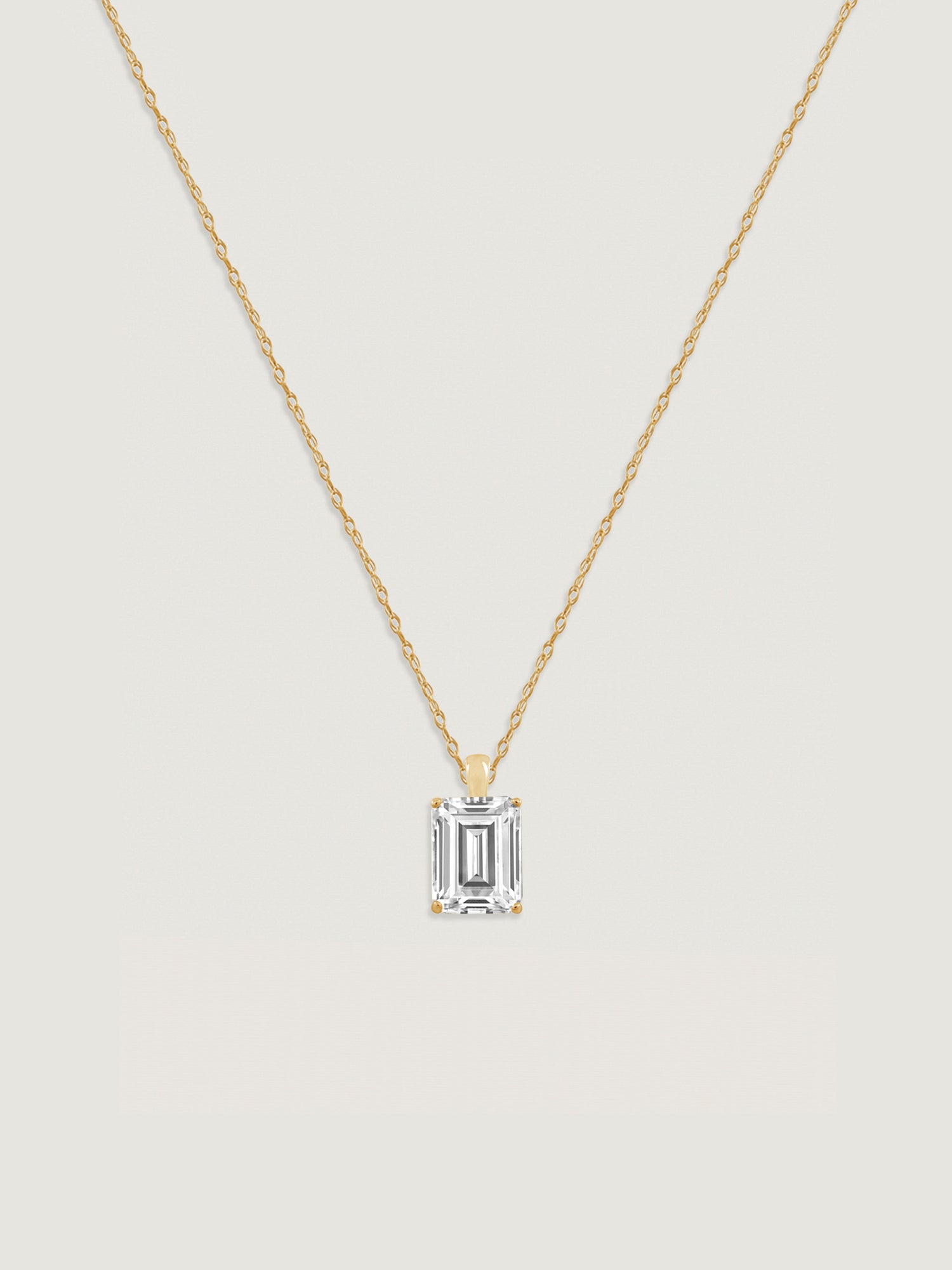 Crafted with 10K solid gold and the most brilliant cut stone, this necklace exudes a luxurious shine that will last a lifetime. Pair it with our solid gold earrings to complete your look.
