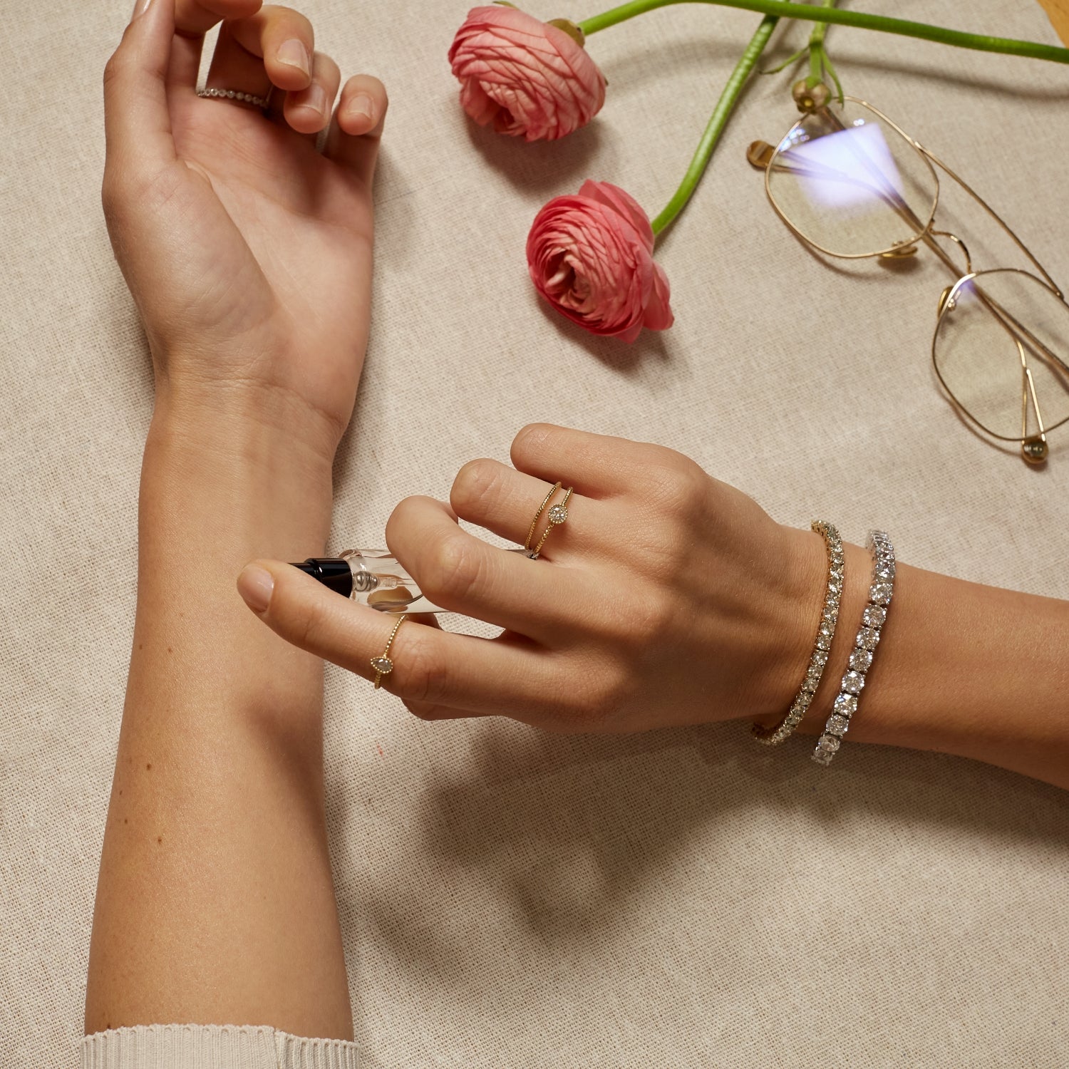 STONE: 4 x 2.5mm/ 5 x 3mm Baguette cut Cubic Zirconia stone