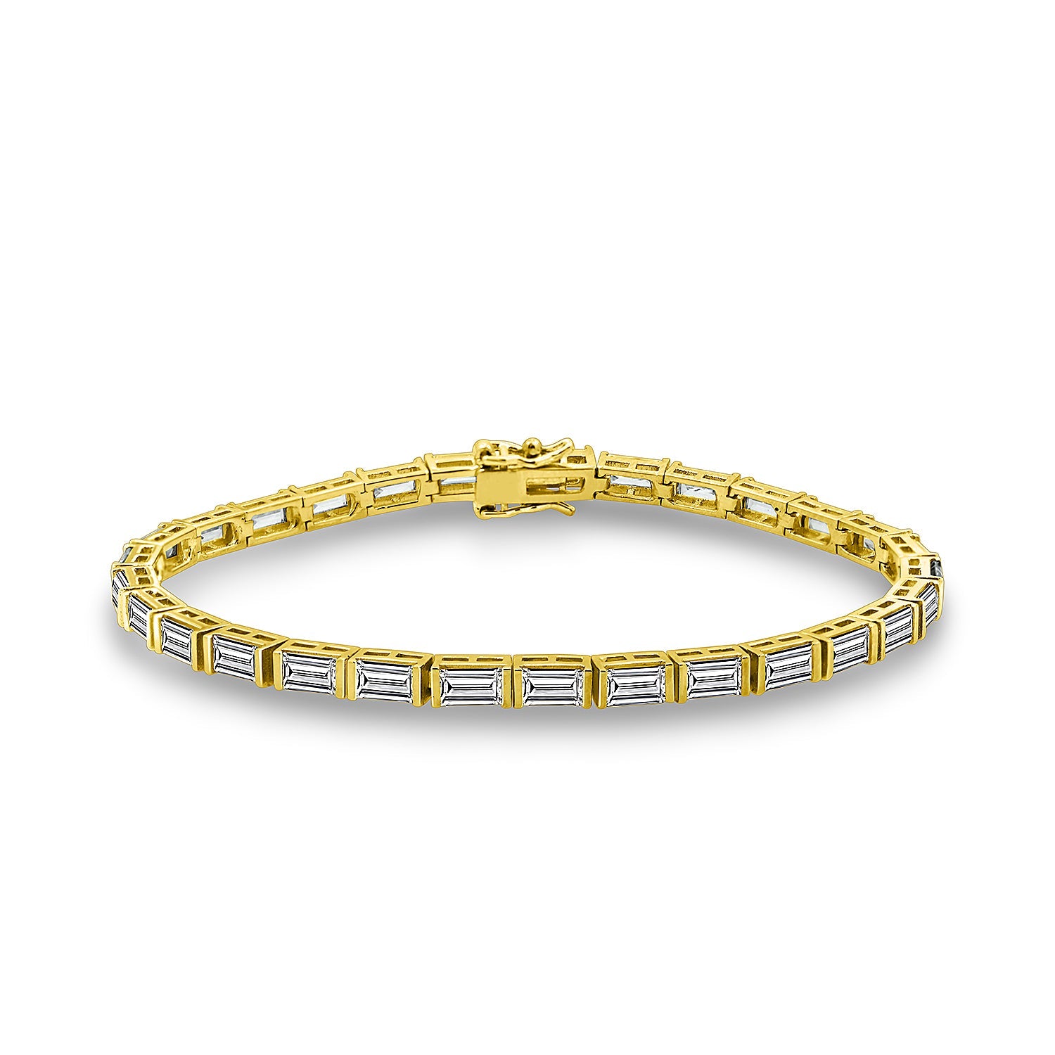Expertly made in sterling silver with baguette-cut simulated diamonds. 7.25 or 8 inches long with a secure clasp.