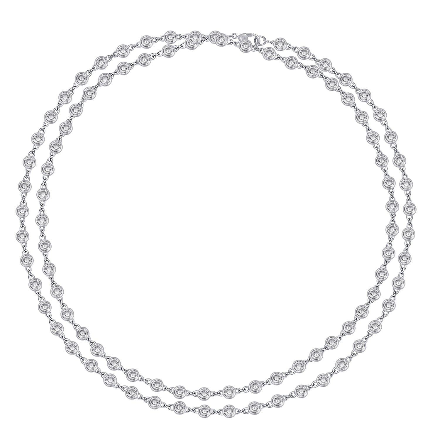 The By-Yard Necklace offers a sleek, elegant look with a modern vibe, perfect for a grand entrance or everyday wear, thanks to its unique bezel setting.