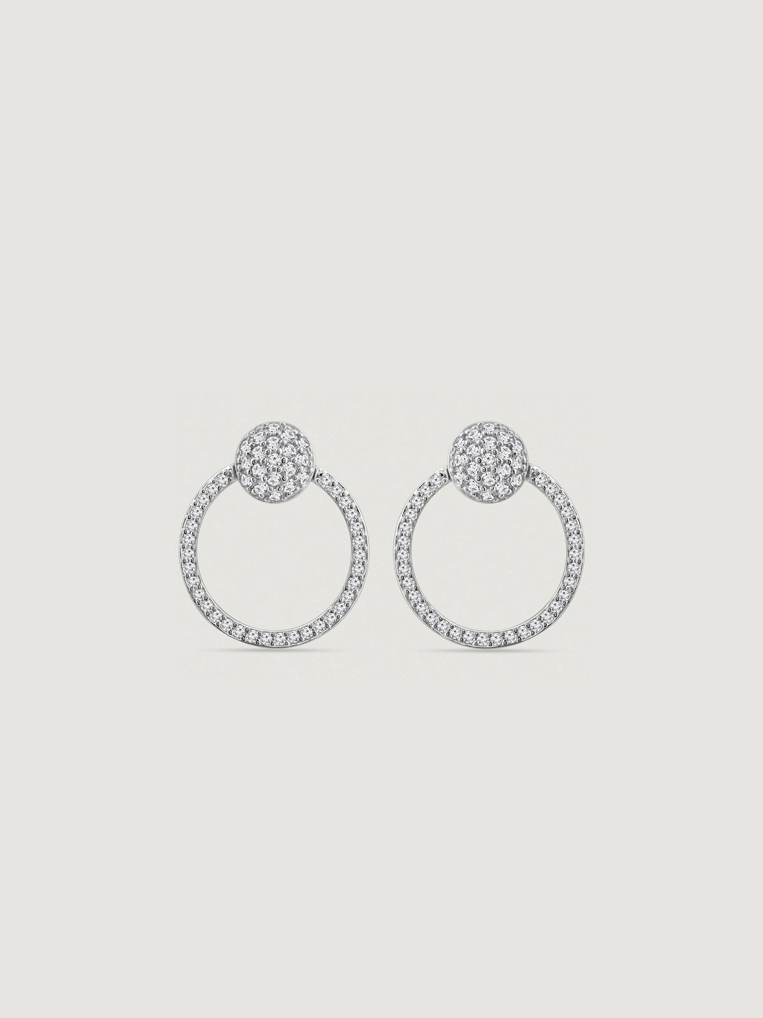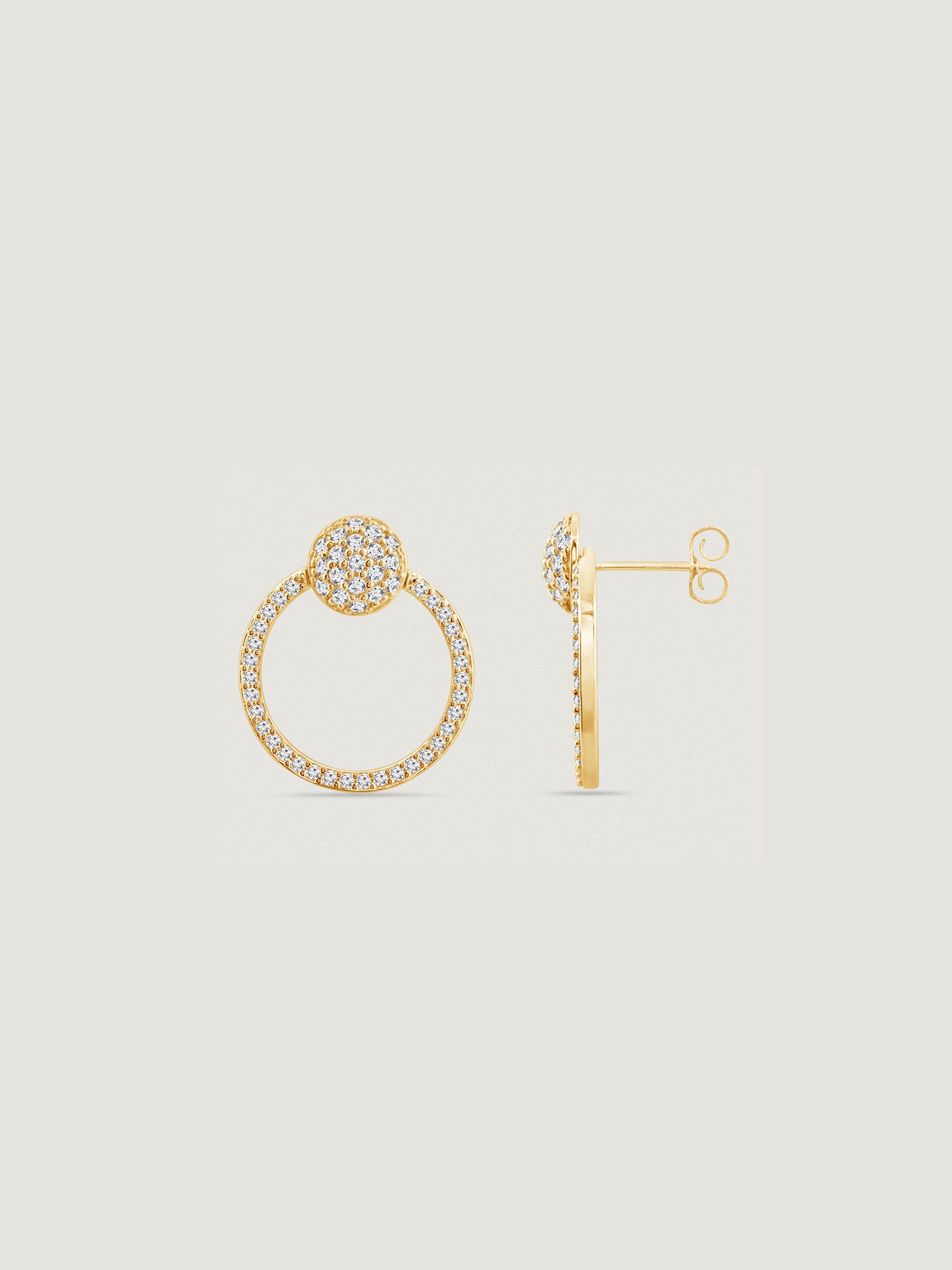 Each earring features a beautifully crafted circular design, meticulously adorned with shimmering cubic zirconia stones that create a dazzling pave effect. These earrings are perfect for adding a touch of elegance and sophistication to any outfit, whether you're attending a formal event or simply want to elevate your everyday look.
