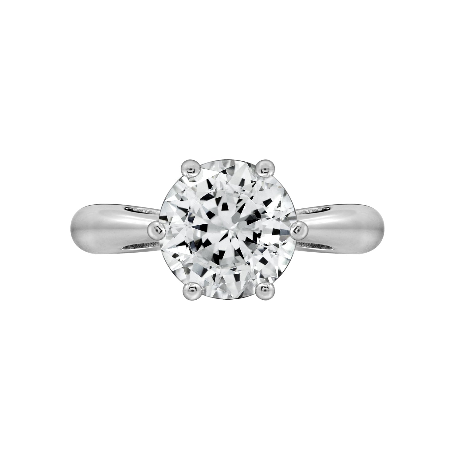 A small detail can often change the whole appearance. An 8.00mm round cut stone lies at the center as the spotlight but the two pieces of 2.25mm stone lying on the sides of the gallery are what give it the extra oomph.