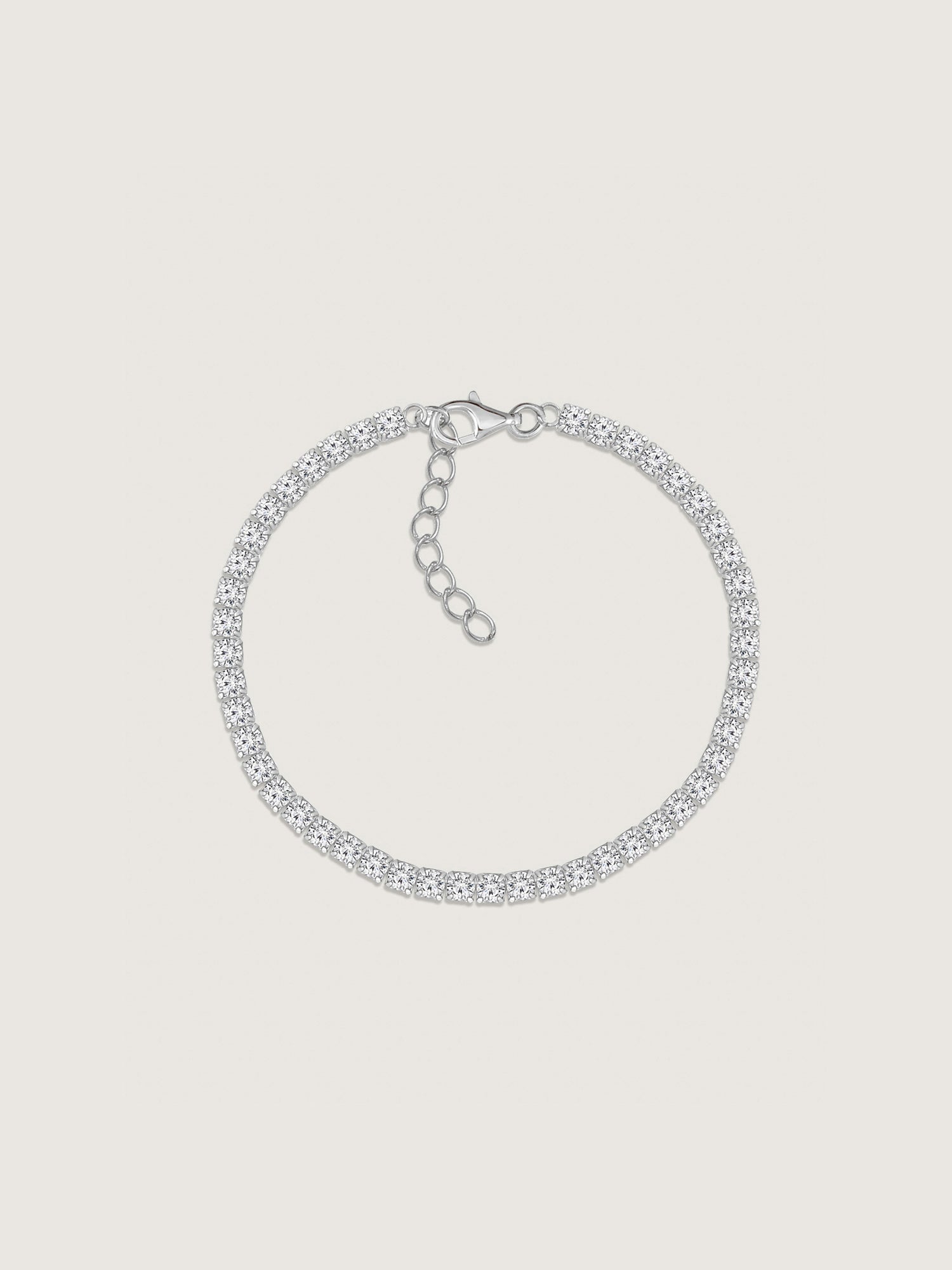 This 925-sterling silver tennis bracelet a timeless addition to any jewelry collection, featuring brilliant round-cut Cubic Zirconia stones. This 14K gold/platinum plated chain bracelet is effortlessly stylish and easy to wear.