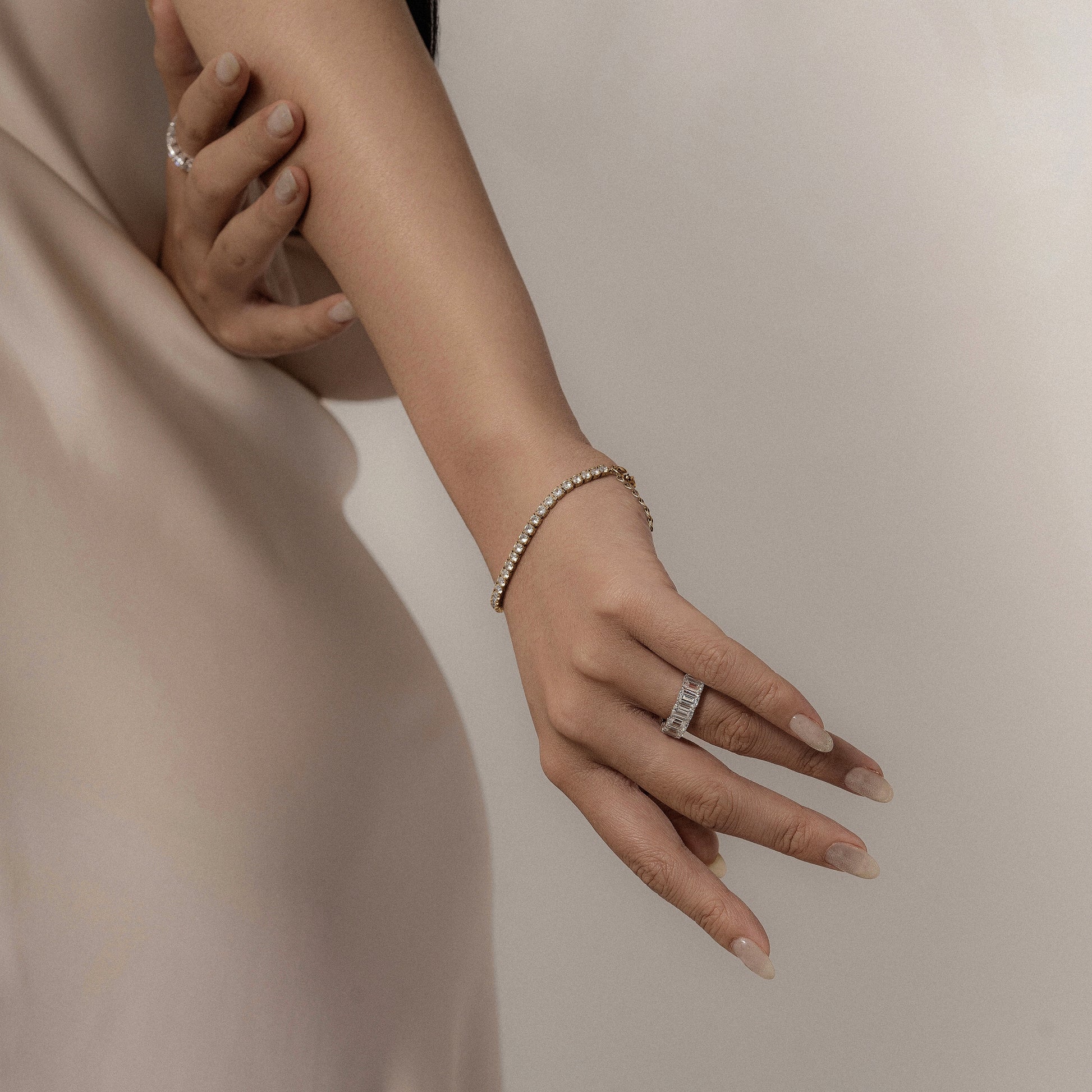 Elevate your everyday elegance with this stunning dainty tennis bracelet. Perfect for layering or wearing solo, it transitions seamlessly from day to night.