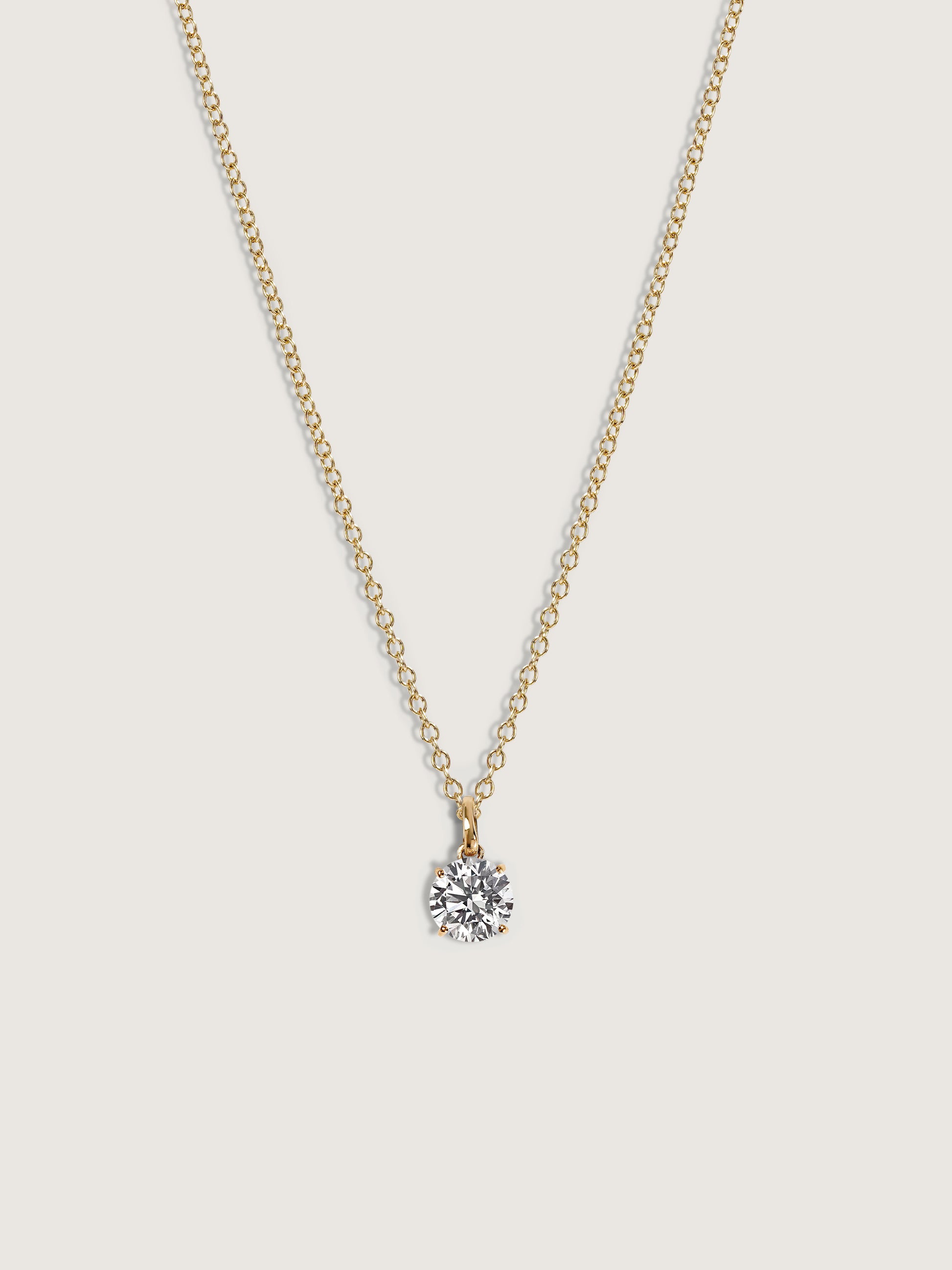 Classic, refined, and effortlessly brilliant—this round lab-grown diamond necklace is a timeless staple. The pendant necklace features a single round lab-grown diamond, secured in a minimal 4-prong 14K yellow gold setting that allows the stone’s natural sparkle to take center stage. Ethically crafted and endlessly versatile, this necklace is perfect for everyday wear or adding subtle elegance to any occasion.