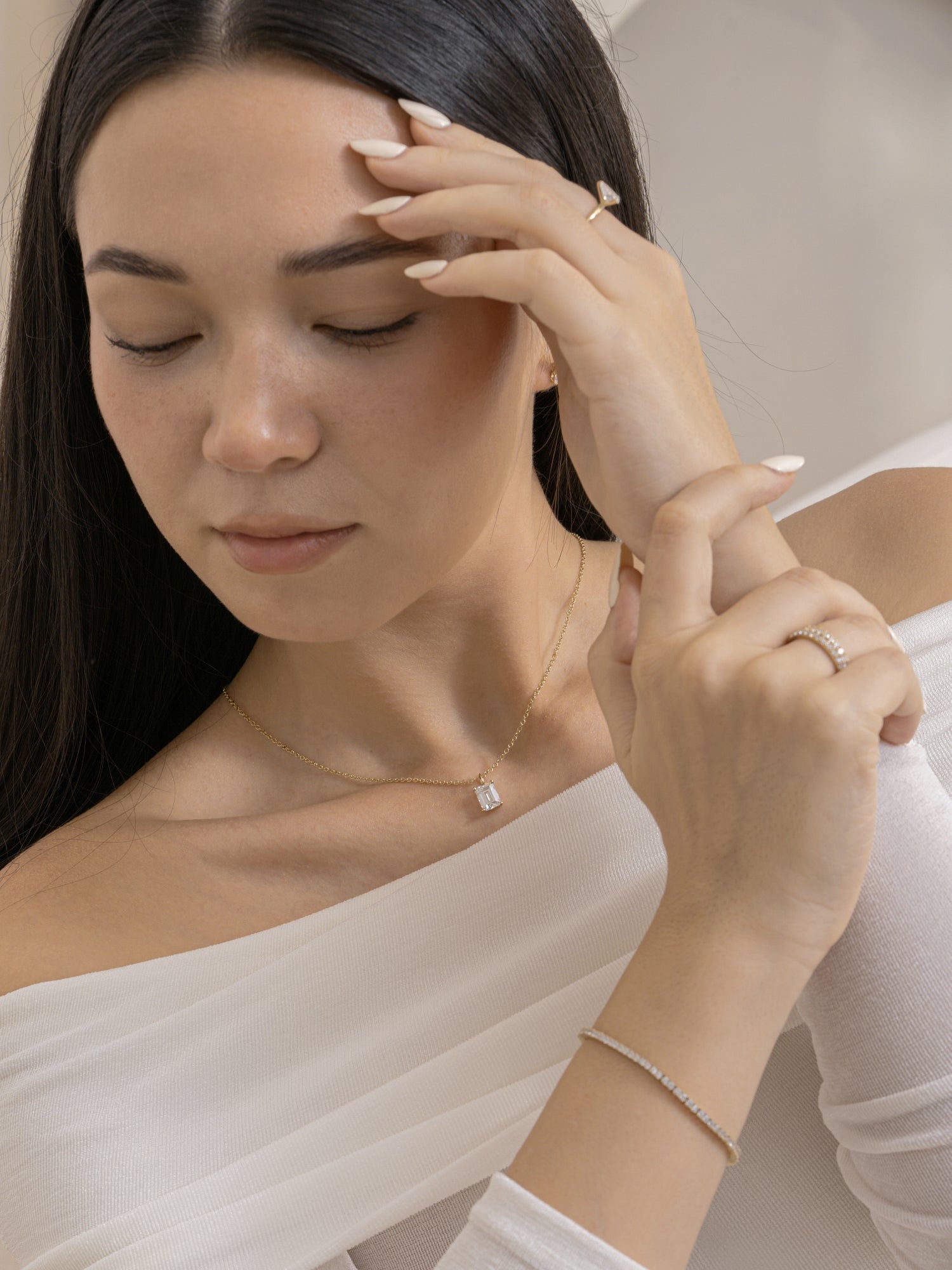 Classic, refined, and effortlessly brilliant—this emerald lab-grown diamond necklace is a timeless staple. The pendant necklace features a single emerald lab-grown diamond, secured in a minimal 4-prong 14K yellow gold setting that allows the stone’s natural sparkle to take center stage. Ethically crafted and endlessly versatile, this necklace is perfect for everyday wear or adding subtle elegance to any occasion.