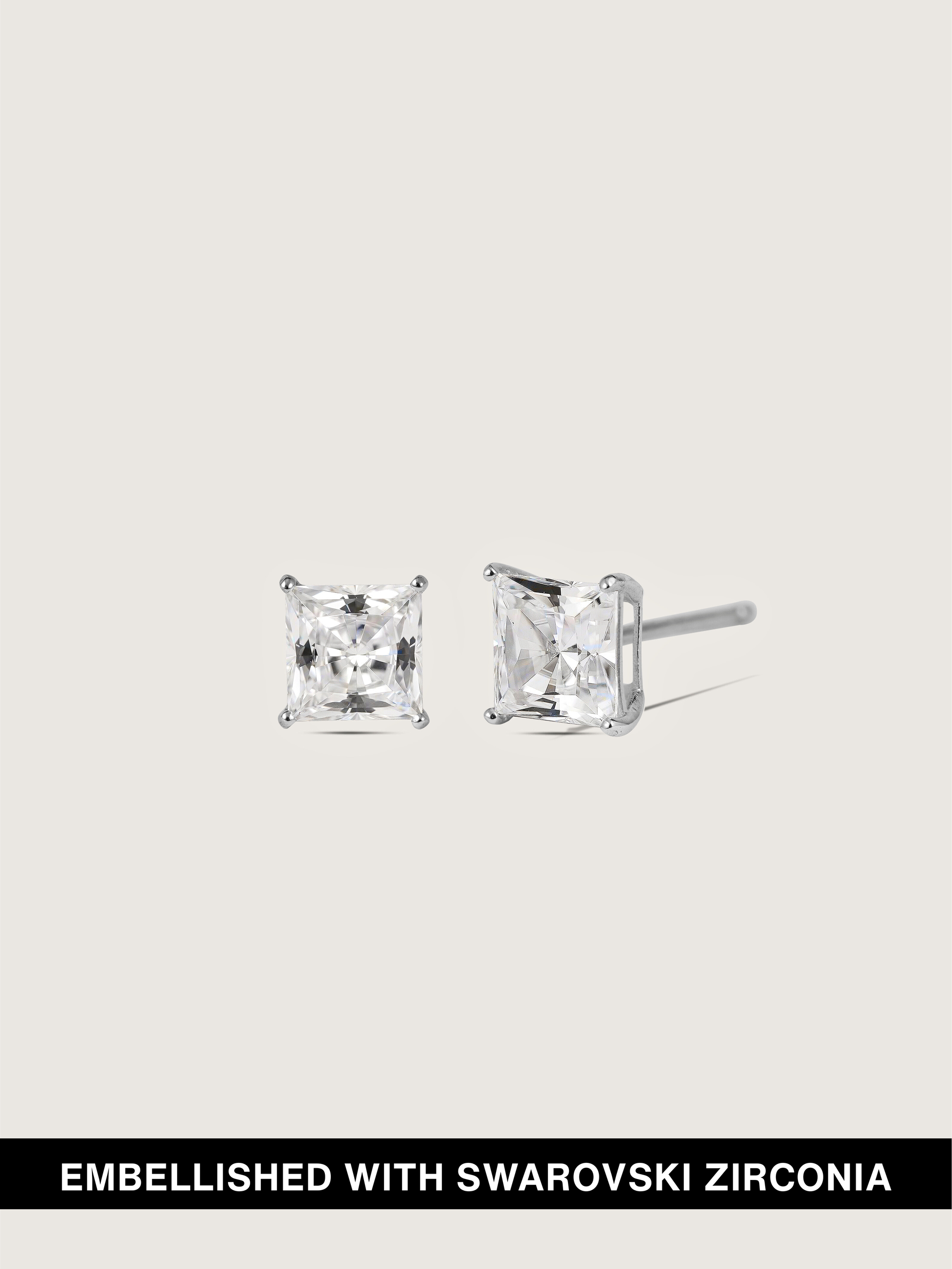 Discover the refined elegance of the Diamonbliss collection. These stud earrings are adorned with 6mm princess-cut Swarovski® Zirconia stones that showcase exceptional brilliance and clarity. The prong setting allows maximum light to pass through the stones, enhancing their sparkle and reflection. Crafted in premium 925 sterling silver, this pair is the perfect accessory for any woman—simple, sophisticated, and effortlessly suitable for every occasion.