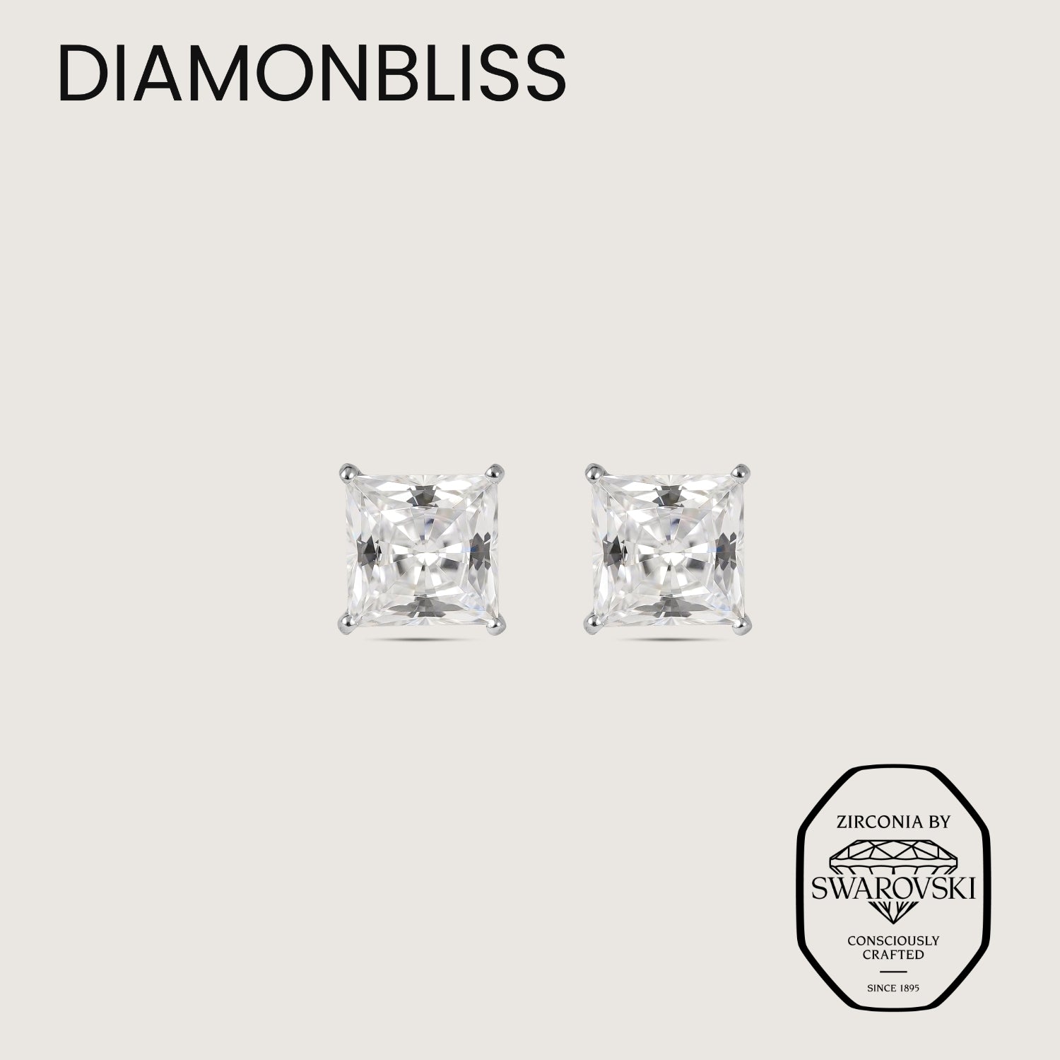 Diamonbliss Platinum Plated Sterling Silver Solitaire Princess cut Stud Earrings| Embellished with Swarovski® Zirconia| 2 cttw