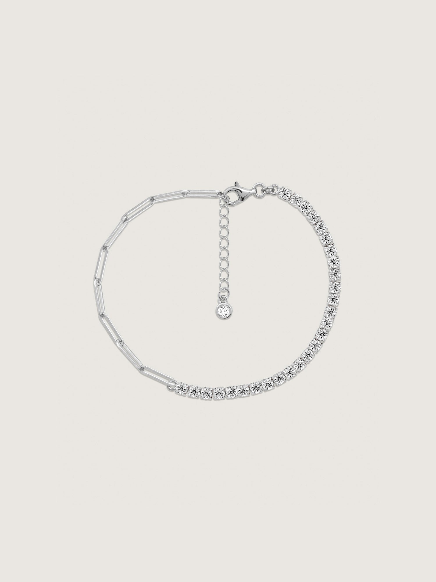 DIAMONBLISS Sterling Silver Round Cubic Zirconia Half & Half Bracelet, 7.25" + 1" extender
