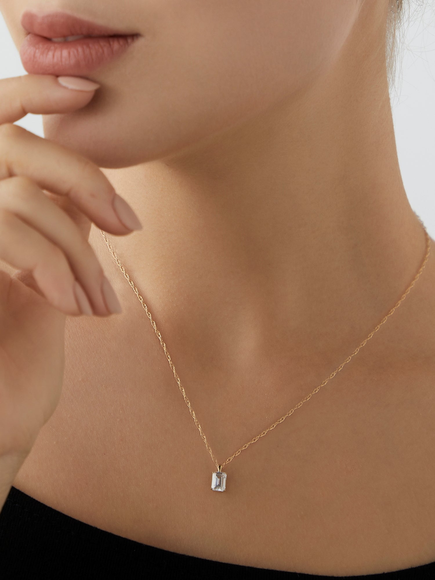Diamonbliss Yellow Gold Plated Sterling Silver Solitaire Emerald cut Pendant Necklace| 1 cttw