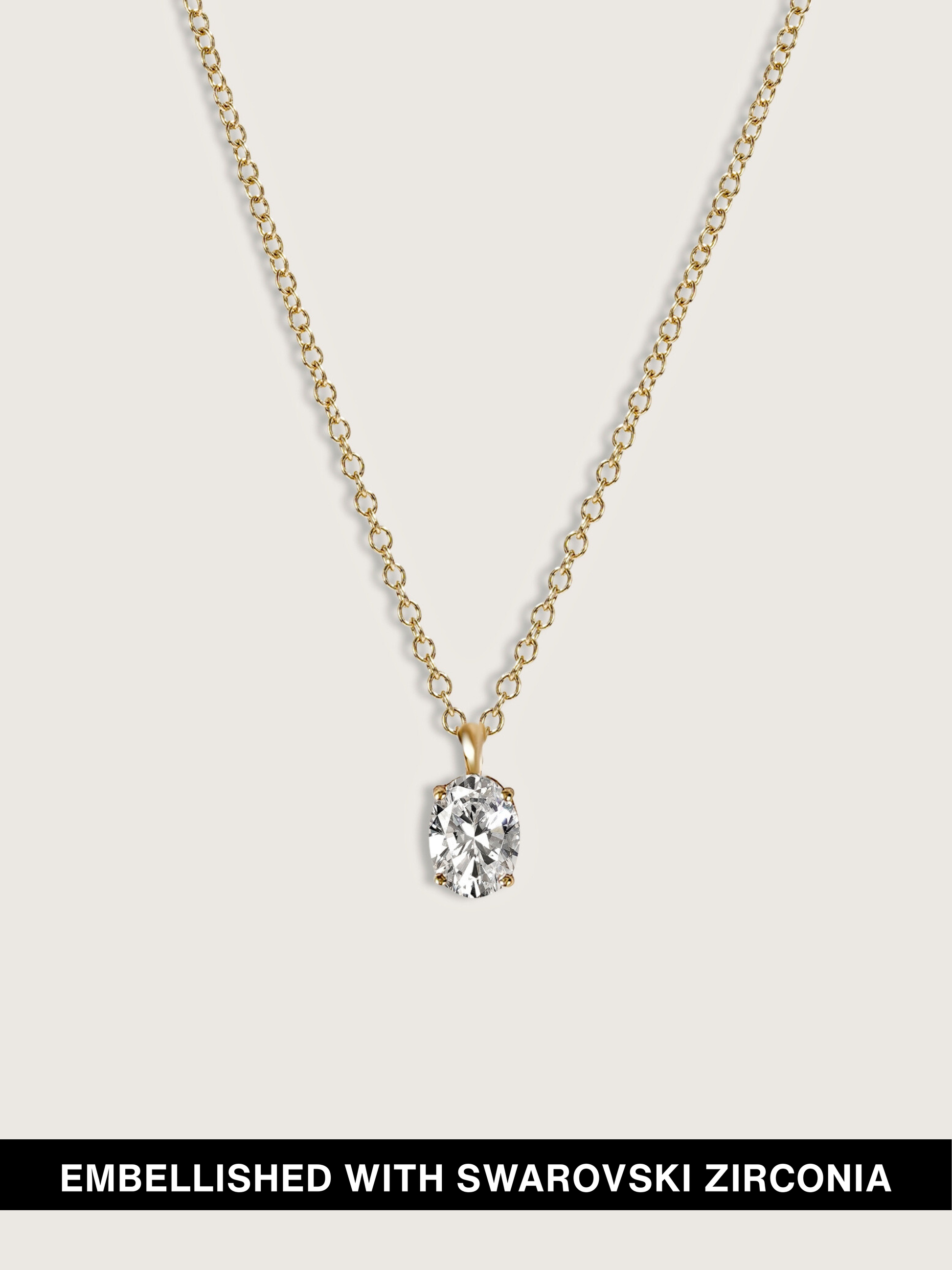 Diamonbliss Yellow Gold Plated Sterling Silver Solitaire Oval cut Pendant Necklace| Embellished with Swarovski® Zirconia|1 cttw