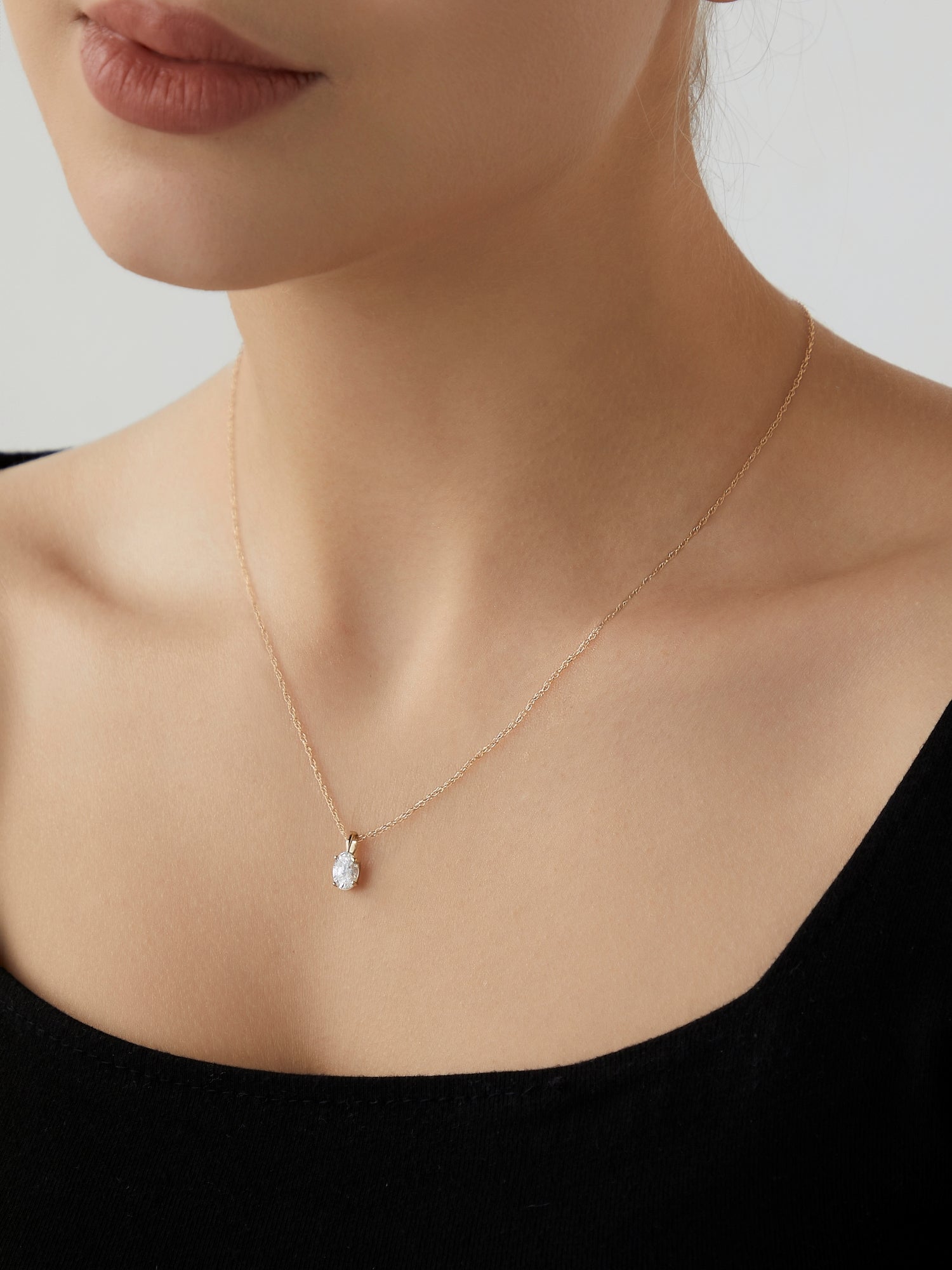 Diamonbliss Yellow Gold Plated Sterling Silver Solitaire Oval cut Pendant Necklace| 1 cttw