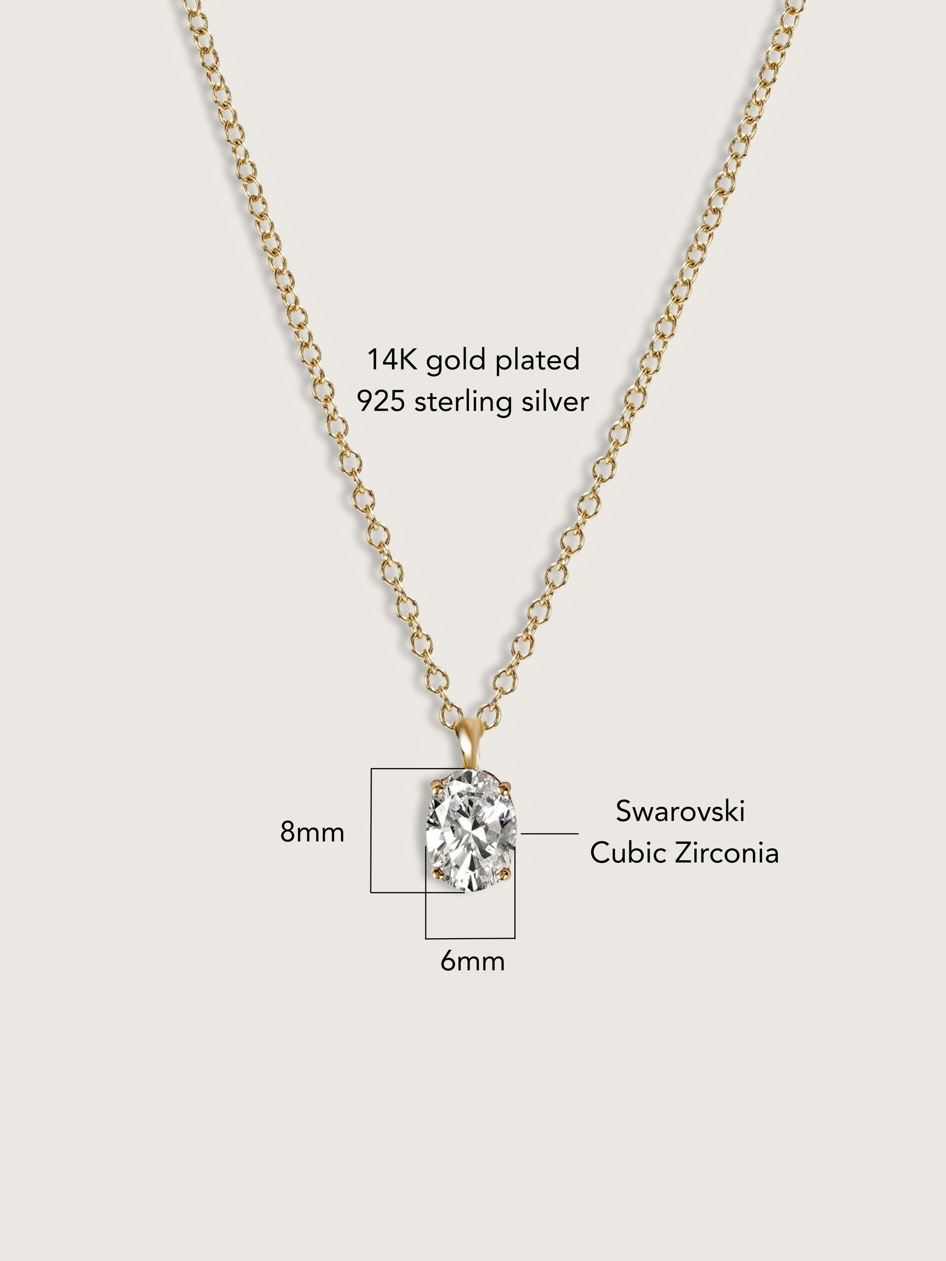 Discover the refined elegance of the Diamonbliss collection. This pendant necklace is adorned with 8*6mm oval-cut Swarovski® Zirconia stones that showcase exceptional brilliance and clarity. The prong setting allows maximum light to pass through the stones, enhancing their sparkle and reflection. Crafted in premium 925 sterling silver, this pair is the perfect accessory for any woman—simple, sophisticated, and effortlessly suitable for every occasion.
