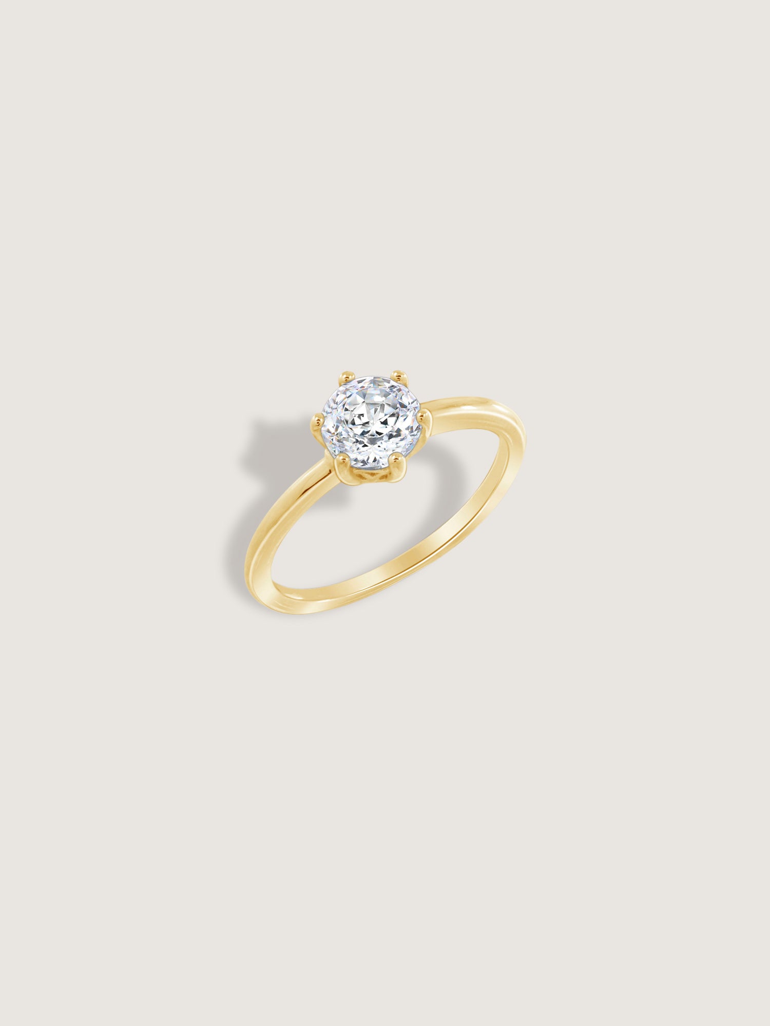 Diamonbliss Yellow Gold Plated Sterling Silver Solitaire Round cut Ring| 1 cttw