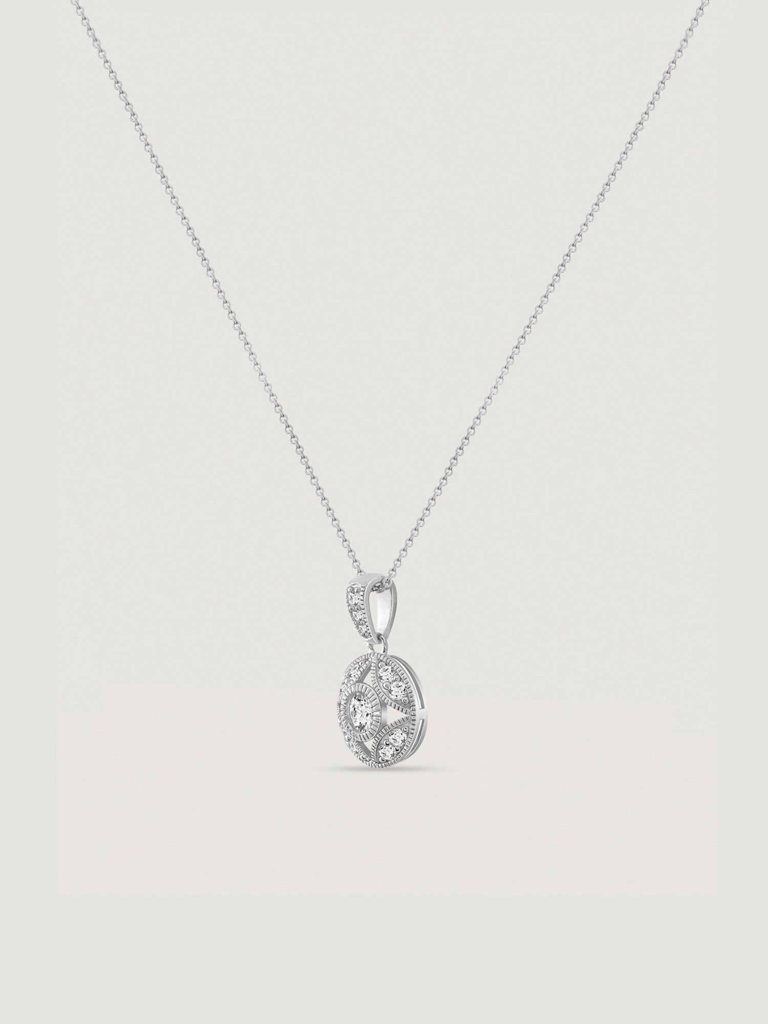 Prong-set Diamonbliss 1 carat Cubic Zirconia get along with antique design style & round shape pendant, making it the perfect accessory for any and all occasions.