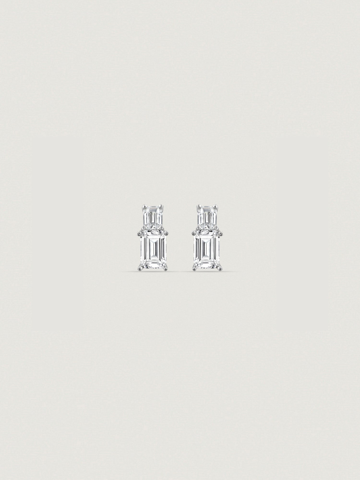 Stone: 6x4mm and 4x3mm Emerald Cut Clear Cubic Zirconia Stones