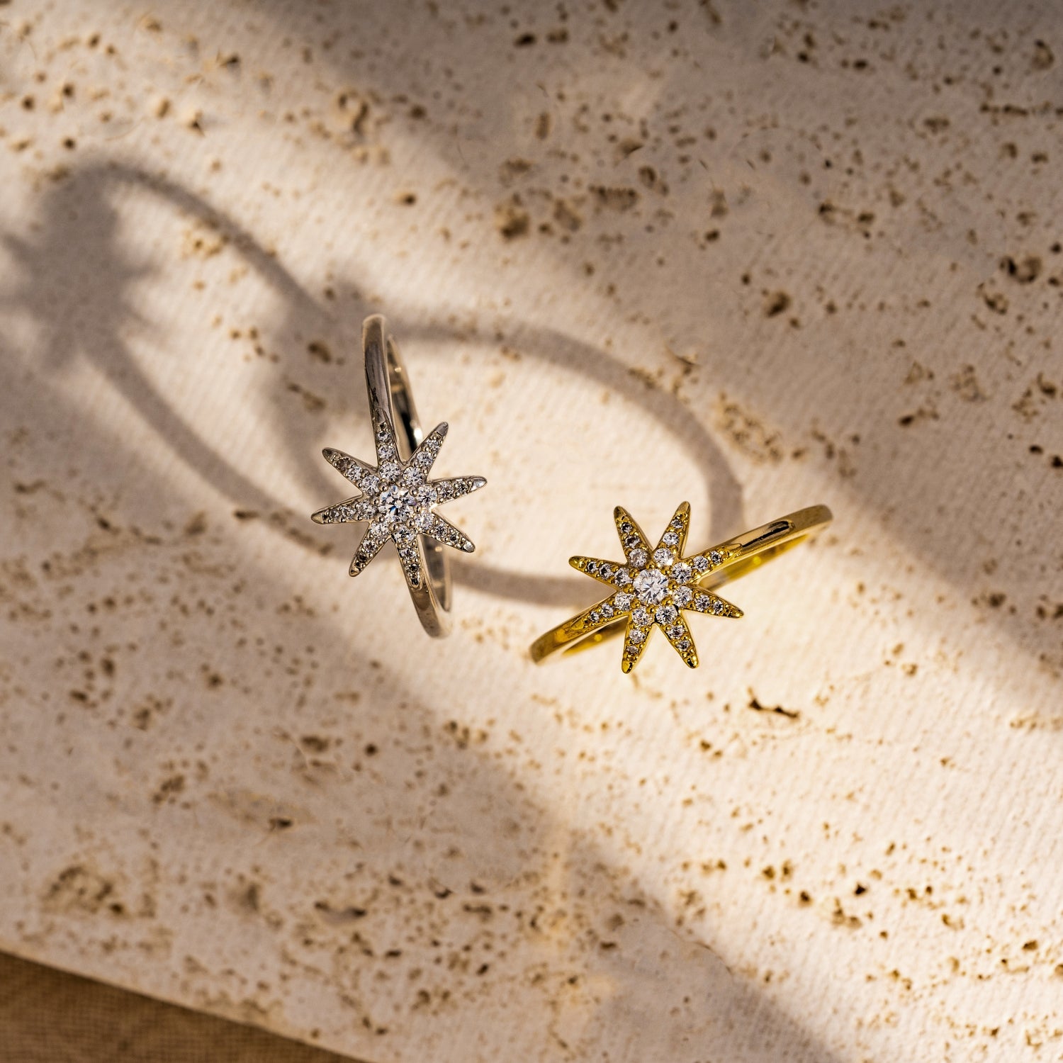 The Sunburst Pave Ring showcases a beautiful star crafted with pavé cubic zirconia, offering an infinite sparkle that is sure to catch the eye on any occasion.