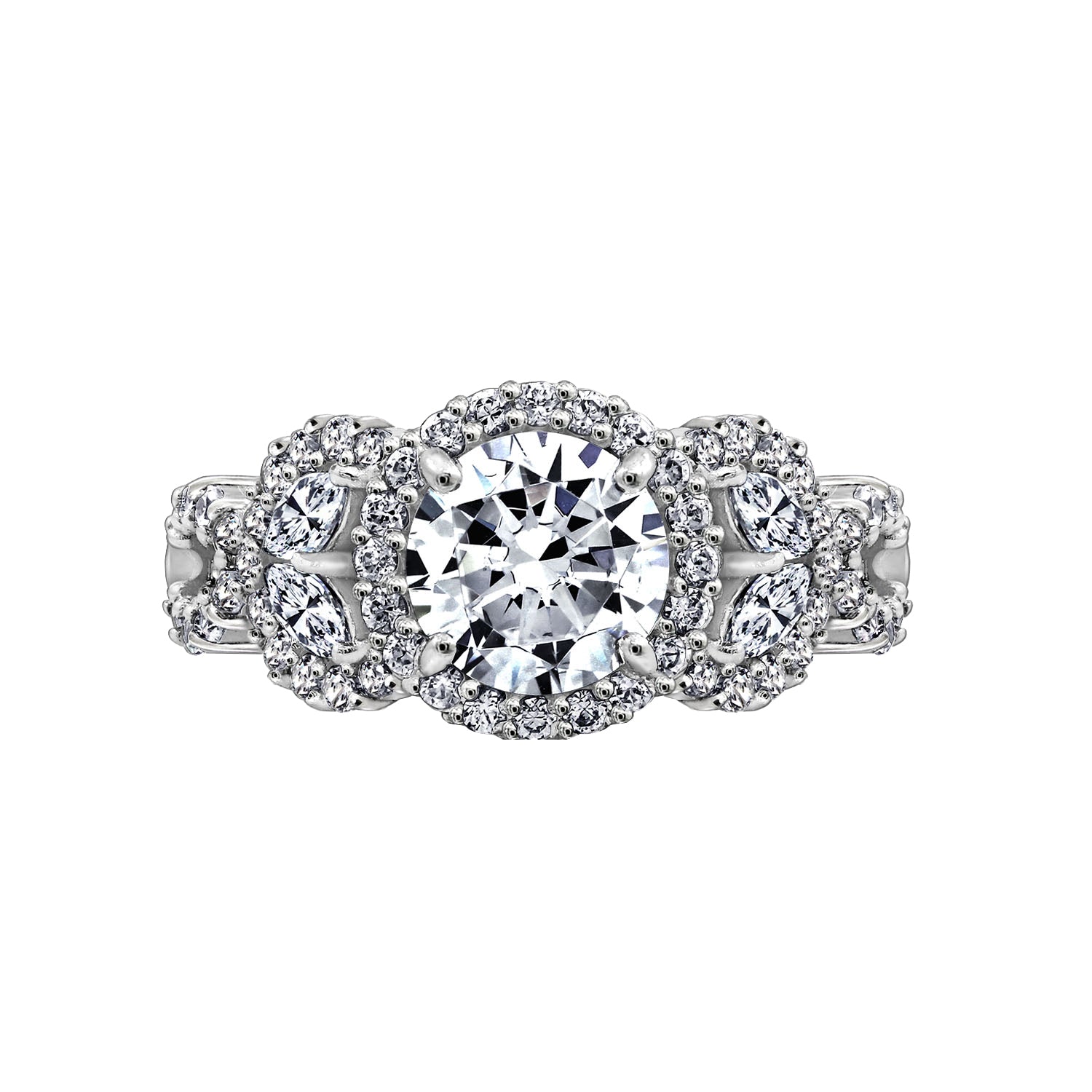 Capture the spark with this stunning platinum halo ring that showcases an elegant drape of prong-set cubic zirconia in a leaf-like design. The ring is adorned with marquise cuts without looking heavy due to its hollow element. Captivating and attractive, this look is great as a gift for your beloved, or for yourself.