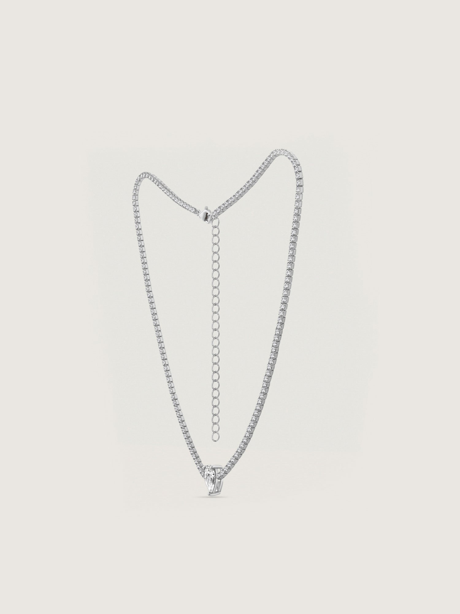 Embrace the brilliance of a single pear-cut cubic zirconia set amidst a line of small round cuts, delivering a stunning sparkle without compromising on comfort.