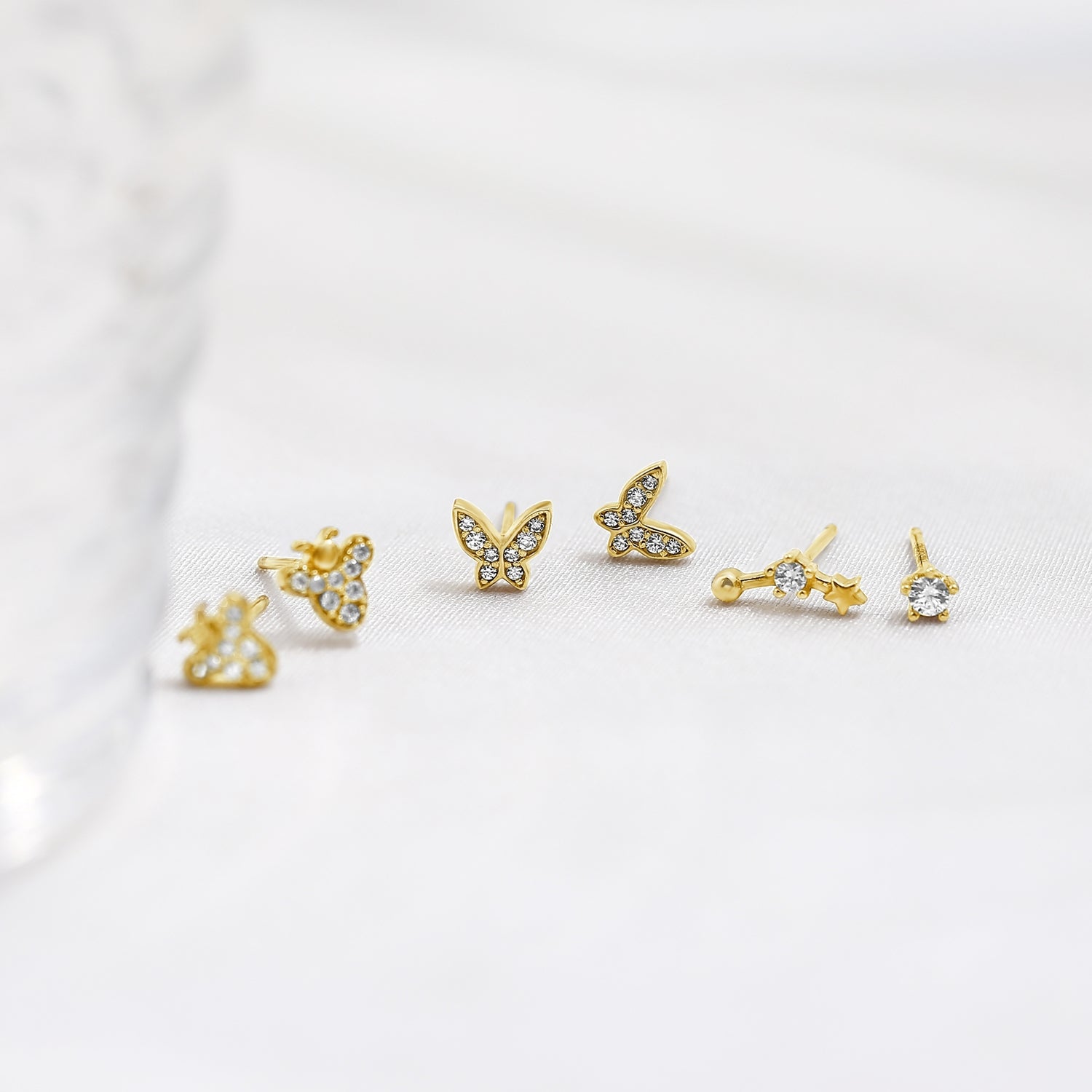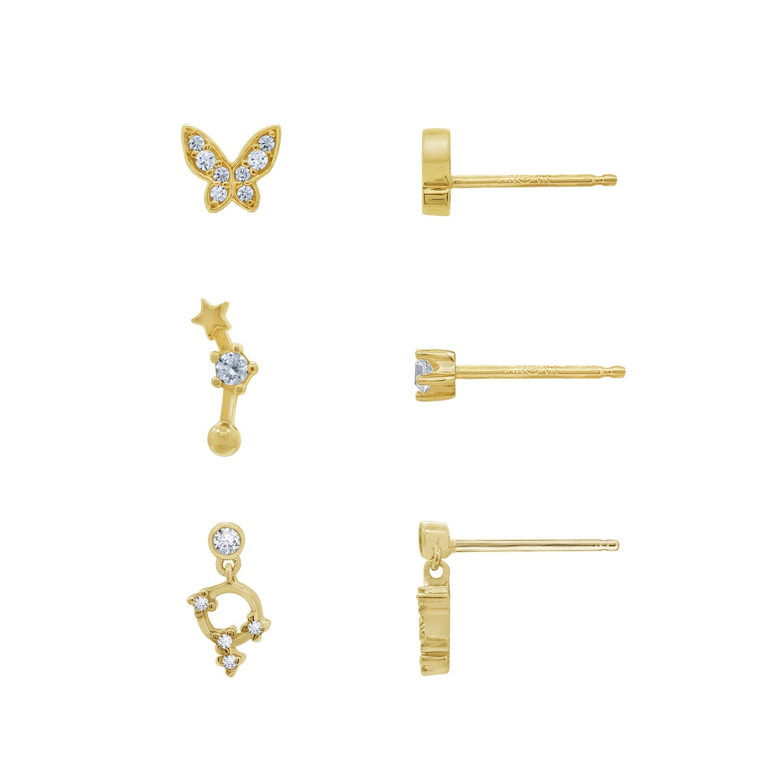 Say cheers to summer with this daring set of pierced earrings. A beautiful and versatile set, these post earrings are polished to a bright shine and secure comfortably with friction backs.