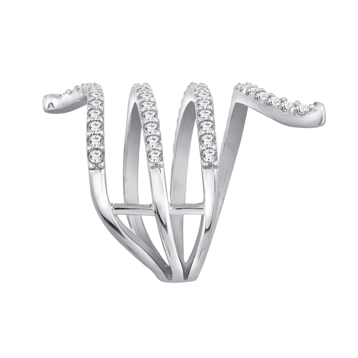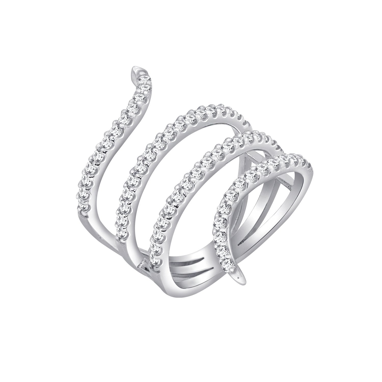 Wrap your finger in shine and sparkle with this swirling triple ring. Featuring pav‚e cubic zirconia and shimmering platinum plating, the ring makes a brilliant finish to any outfit. Wear it solo, or mix and match with other designs from Diamonbliss for better effect.