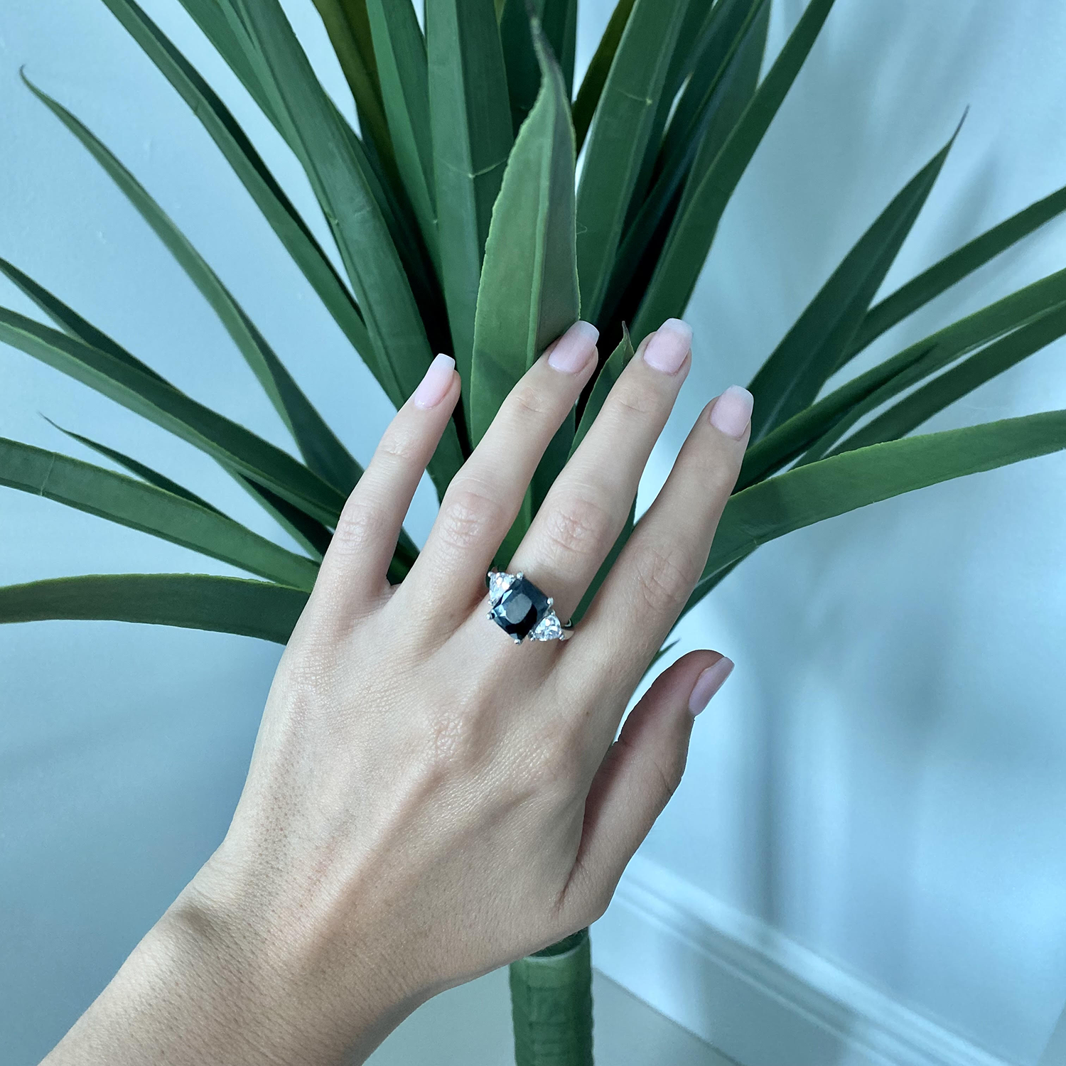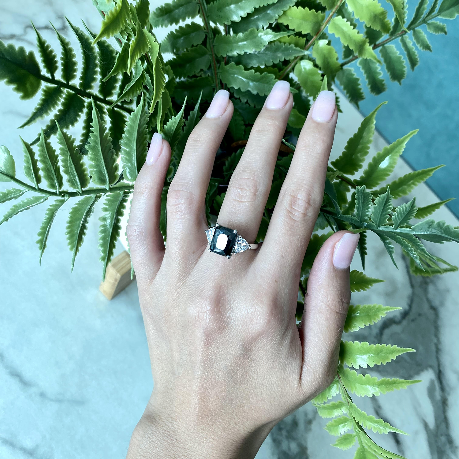 Stunning and sleek, this solitaire CZ ring features an Emerald Cut CZ Platinum Plated stone in a delicate one-row band. With a total carat weight of 6ct, this ring is a perfect alternative to a costly diamond ring or as a travel wedding ring.