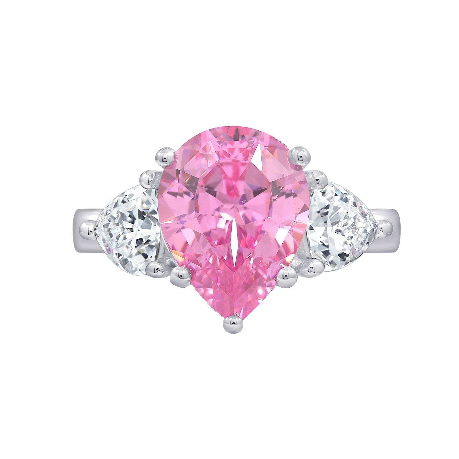 Sleek, colorful, and oh-so feminine, this solitaire CZ ring is a wonderful choice for the woman you love. A crisp engagement ring design featuring CZ Platinum Plated Pear Cut in a delicate one-row diamond band set gives the illusion of eternity. This cute ring looks so much like a genuine diamond, this stunning ring total carat weight of about 6.5ct, that it would be the perfect alternative for an extremely expensive authentic diamond ring, or as a replacement wedding ring to wear when traveling.
