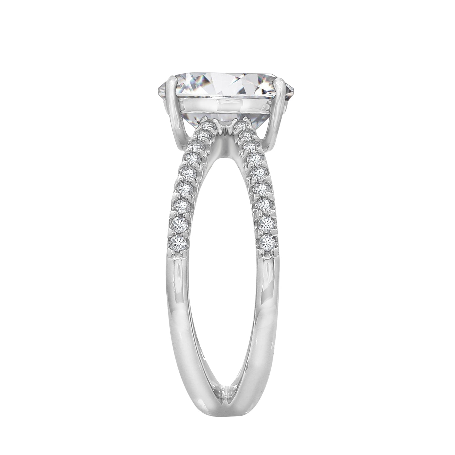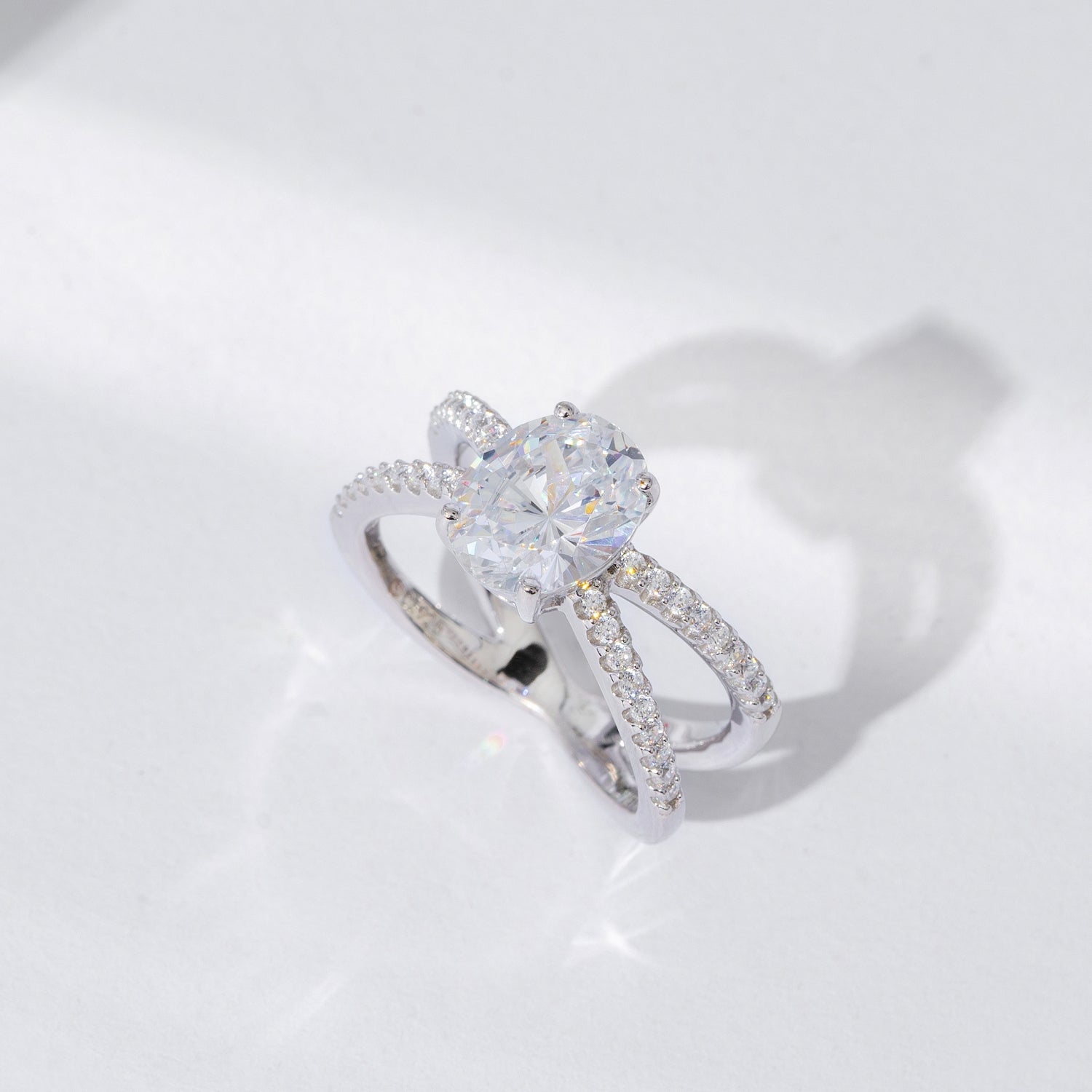 Take a break from the norm with the X Split Shank Solitaire Ring. Beautifully crafted, this platinum-plated silver ring features a single oval cubic zirconia set on two diamond bands that form a reverse split shank, which splits on the sides of the ring rather than at the front like a traditional split shank. Available in two options, oval cut, and heart cut.